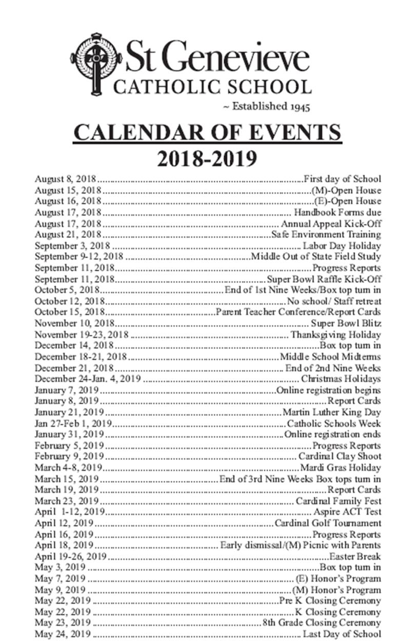 St Genevieve Elementary School Calendar. We are very happy with the dedicated and caring teachers and the quality academic and. We strive to nurture our children in all.